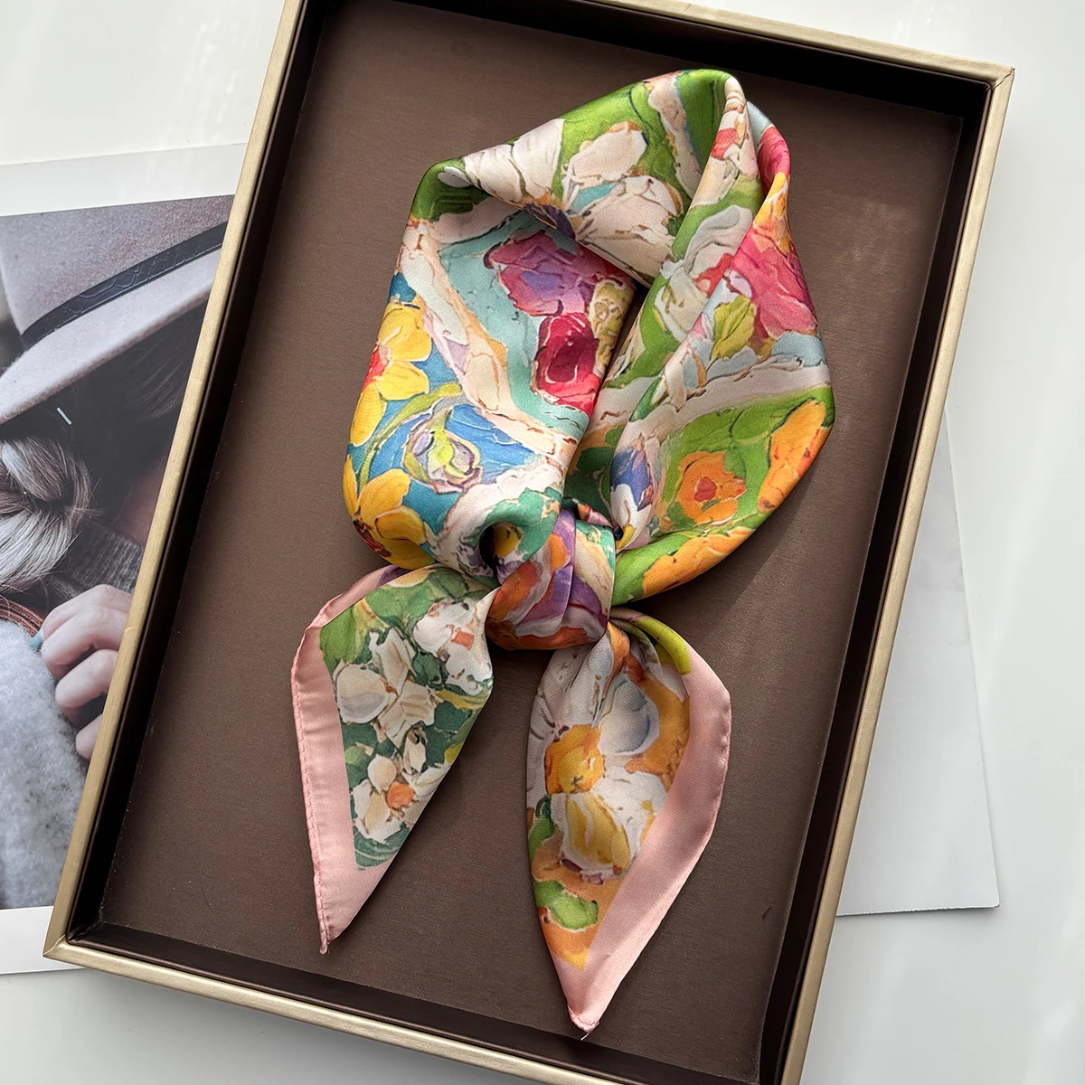 Pañuelo cuadrado floral SatinÉclat™ para mujer – Encanto delicado, belleza atemporal