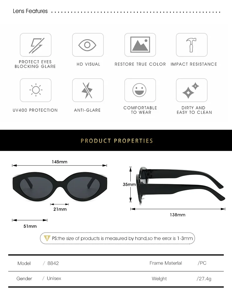 Lightweight and comfortable, they are perfect for all-day use — whether for casual outings, travel, or elegant occasions. The oval shape flatters your features, adding a subtle yet stylish touch to your overall look.