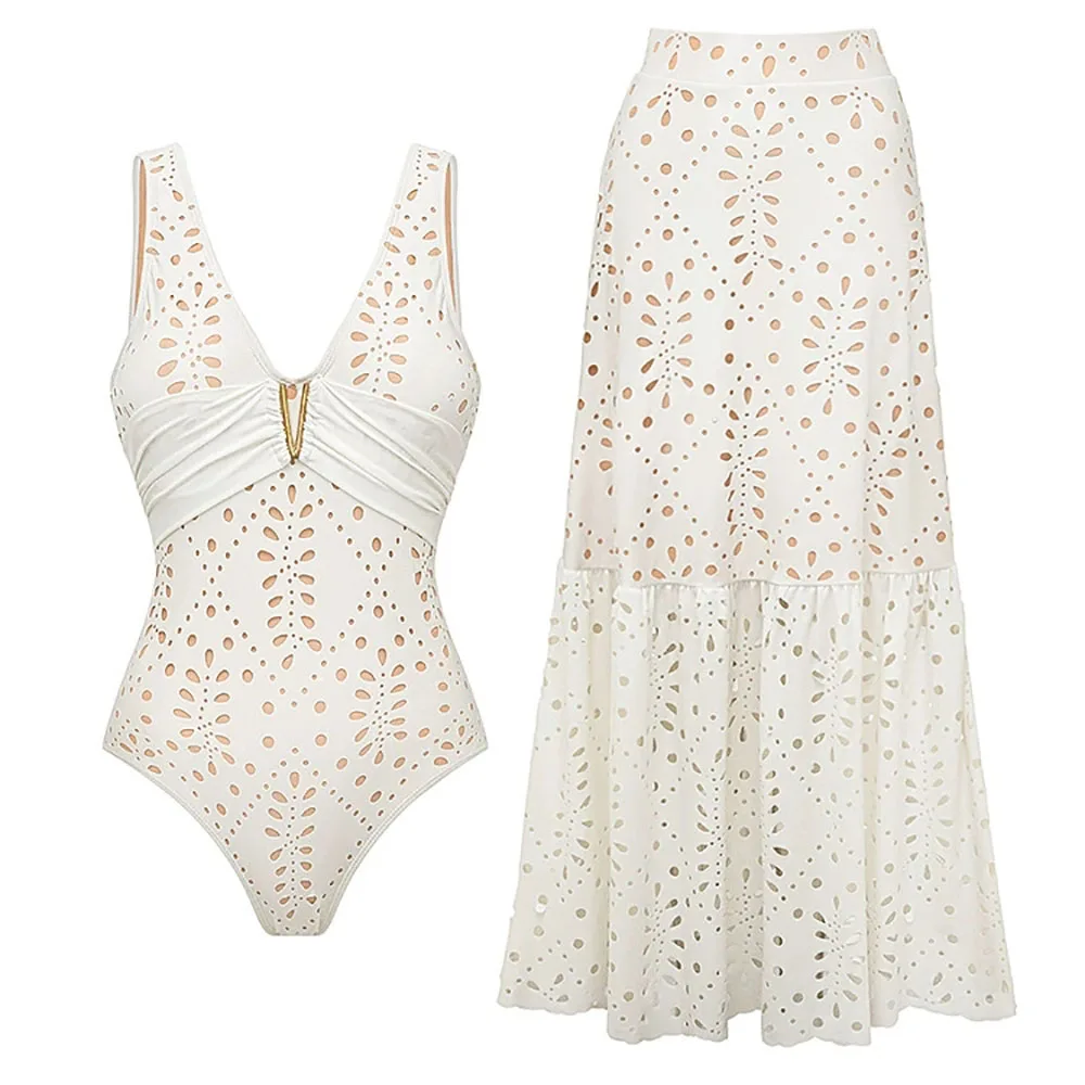 Được chế tác từ các loại vải cao cấp, mật độ cao với lớp hoàn thiện dạng mở tinh tế, nó mang đến sự tinh tế về độ trong suốt và kết cấu. Thân áo xếp nếp mang đến sự vừa vặn, hỗ trợ phù hợp, trong khi đường viền rộng của váy đón ánh sáng và gió biển một cách tinh tế ấn tượng. Cho dù được tạo kiểu như một vẻ ngoài gắn kết cho một buổi dạ tiệc sân vườn độc quyền hay được đeo riêng cho một chuyến du ngoạn trên du thuyền riêng, nó vẫn thể hiện đỉnh cao của sự quyến rũ tinh tế dành cho những người sành điệu đương đại.