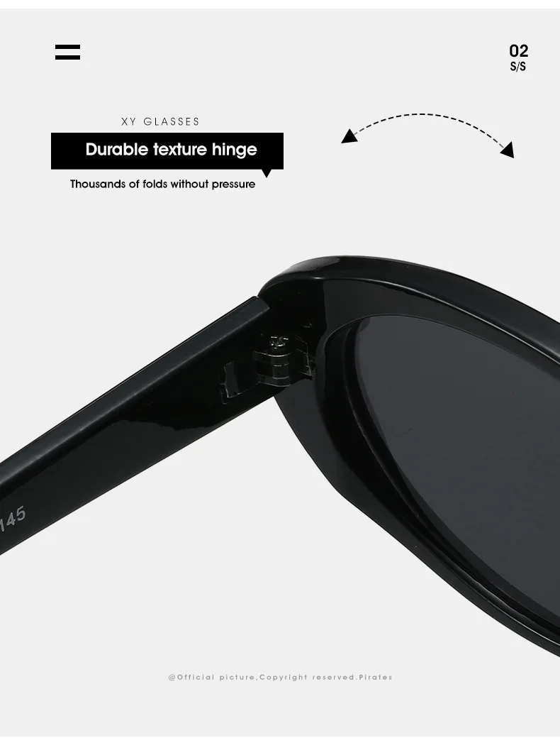 Được chế tạo từ vật liệu chất lượng cao, những chiếc kính râm này có khung bền và tròng kính hình bầu dục mỏng tạo nên kiểu dáng tinh tế và thời trang. Thiết kế nhỏ gọn mang đến sự tinh tế nhưng táo bạo.