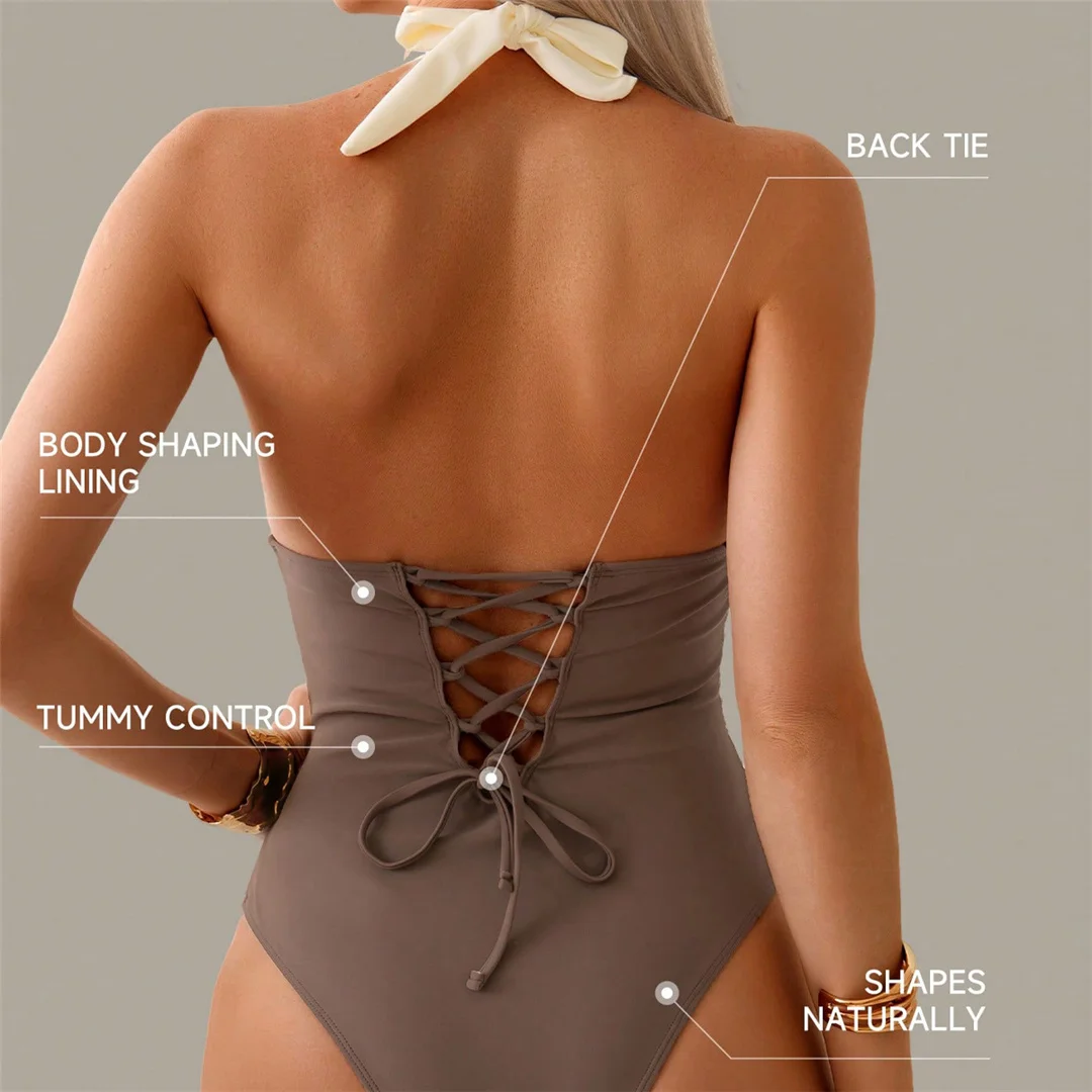 Made from premium stretch fabric with built-in shaping support, it offers gentle compression for tummy control and a smooth, contoured finish. The adjustable back tie ensures a customized fit, while the structured design provides both comfort and confidence throughout the day. Ideal for beach days, poolside moments, or luxury resort escapes, it elevates swimwear into a statement of style.